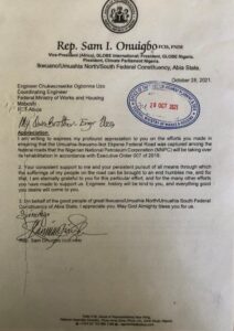 According to the party, the reconstruction effort was facilitated through the initiatives of former lawmaker Sam Onuigbo, who represented Ikwuano/Umuahia North and South Federal Constituency in the 8th and 9th National Assembly. The APC explained that following a motion moved by Onuigbo in 2016 and engagements with the Federal Ministry of Works, the Federal Government initially awarded a contract to Foretex Nigeria Ltd for palliative work between December 2016 and April 2017.