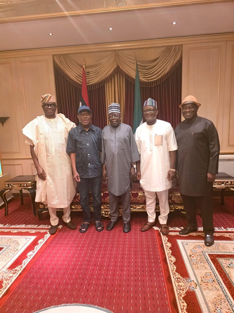 President Bola Ahmed Tinubu today met with the former Governor of Rivers State and current FCT Minister, Nyesom Wike; former Governor of Abia State, Okezie Ikpeazu; former Governor of Ekiti State, Ayodele Fayose; and former Governor of Benue State, Samuel Ortom, at the Presidential Villa, Abuja.